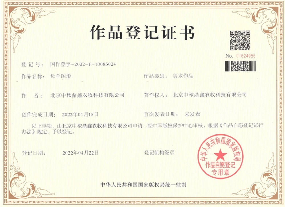 母羊圖形作品登記證書